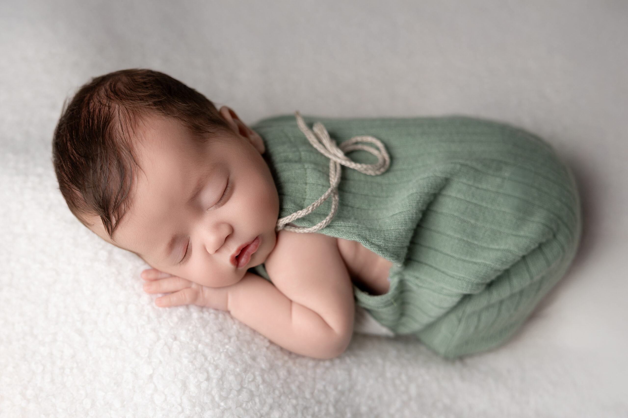 The ideal age for newborn photography is 5–14 days old. Babies are sleepier, more flexible, and easier to settle in those first two weeks. After that, the window shifts quickly.